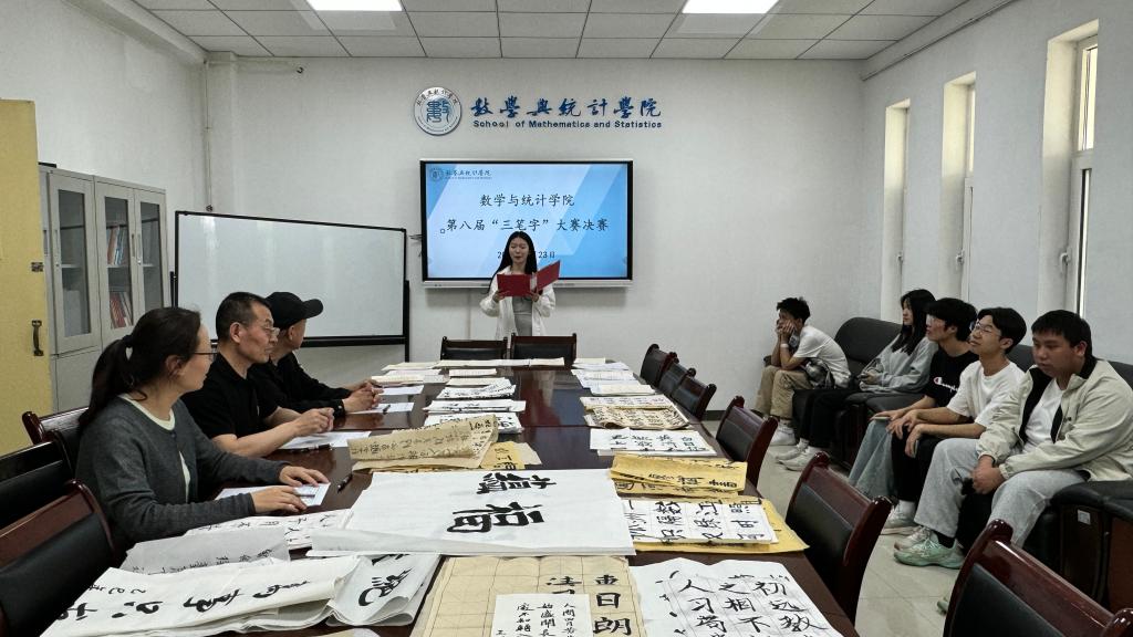为提高学生的书写水平,提升师范专业学生技能训练,传承和弘扬中华优秀传统文化,数学与统计学院于4月成功举办第八届三笔字大赛。本次大赛以“墨韵流转展风采 三笔生辉竞芳华”为主题,设置钢笔字、粉笔字、毛笔字三个赛道,历时半个月,经过初赛和复赛层层筛选,4月23日在积学楼D319会议室进行决赛。学院院长丁剑洁教授、李宏飞教授、周脉东和杨艳四位老师担任评委。