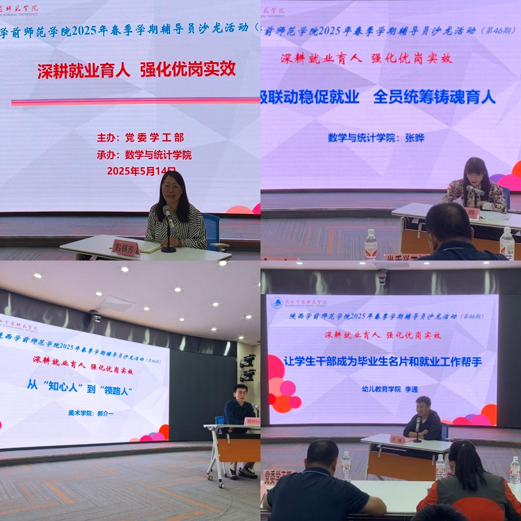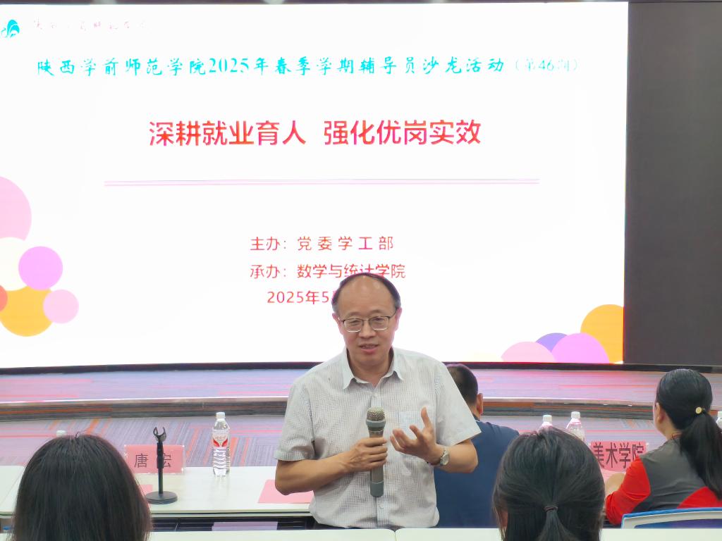 为提升辅导员的职业能力,深化就业育人实效,助力2025届毕业生高质量就业,5月14日下午,由党委学工部主办、数学与统计学院承办的学校第46期辅导员沙龙在积学楼A1教室成功举行,主题为“深耕就业育人,强化优岗实效”,本次活动受到招生就业处的大力支持。校党委副书记唐宏,招生就业处处长吕银芳,学工部副部长王成富,数学与统计学院、马克思主义学院、美术学院、幼儿教育学院的党委副书记、专兼职辅导员和学生代表共50余人参加。数学与统计学院党委副书记张晔主持并致辞。