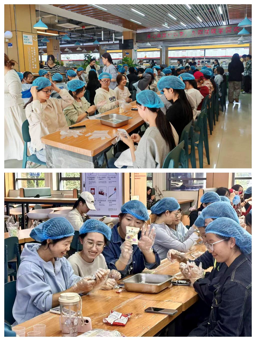 为进一步推进人文学院一站式社区文化建设,强化广大师生铸牢中华民族共同体意识,弘扬传统文化,9月29日下午,人文学院联合后勤服务管理中心在学生餐厅开展了人文学院一站式社区“同心共筑中国梦,月圆情暖家国欢”手工月饼制作活动。人文学院、后勤服务管理中心相关负责人,辅导员,学生代表参加了此次活动。