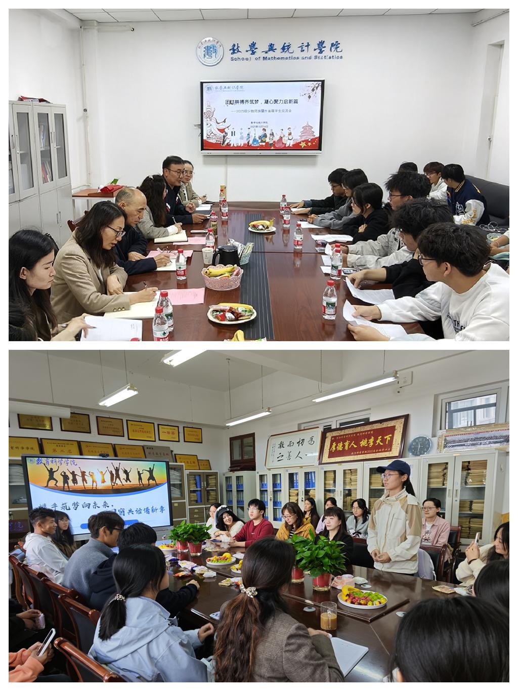 近日,数学与统计学院、教育科学学院分别组织召开2025级外省暨少数民族新生座谈会,关心、关怀外省和少数民族新生,帮助他们尽快融入大学生活。联系学院的校领导、学院班子成员、新生辅导员及2025级外省和少数民族新生代表参加座谈会。