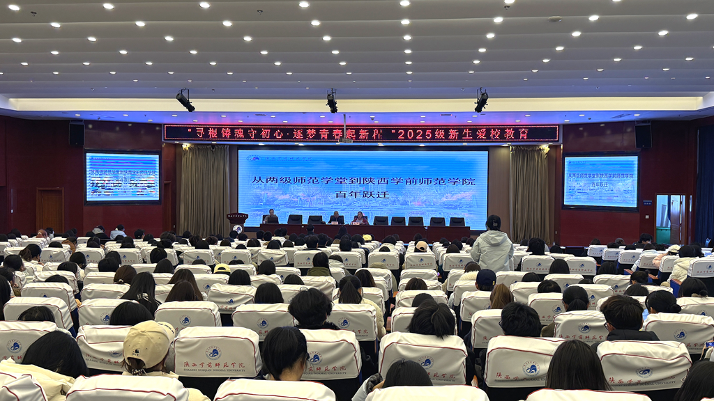 活动在校园宣传片中拉开帷幕。原陕西教育学院副院长殷建华作为学校创办亲历者,从历史沿革、办学历程、阶段任务、办学成果四个方面深情回顾学校百年发展脉络,从 1906年两级师范学堂的初创,到教师进修学院的成立、陕西教育学院的复办,再到2012年改制为best365足球官网,他以亲身经历重点讲述了教师进修学院和陕西教育学院恢复建校时期的奋斗故事,“拉架子车搬运图书仪器”“送教下乡”的艰辛场景,生动诠释了老一辈教育工作者艰苦创业、无私奉献的精神。他强调,学校始终与国家发展同频共振,肩负培养基础教育师资、填补西北本科幼教师资空白的时代使命,并寄语新生坚定理想、勤学笃行,争做堪当大任的新时代青年。