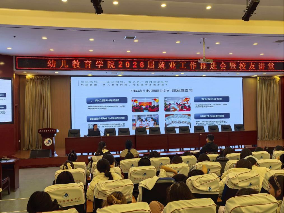 在就业推进会上,学院党委相关负责人总结回顾了2025届就业情况,分析了当前学前教育专业就业形势,对2026届就业工作进行了具体部署,引导学生树立正确就业观,提升求职竞争力,用好学院帮扶资源。