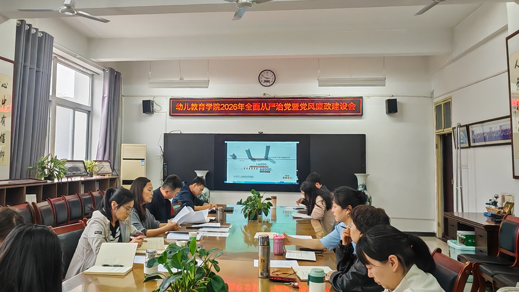 4月8日下午,幼儿教育学院召开2026年全面从严治党暨党风廉政建设会议。会议总结2025年全面从严治党和党风廉政建设中存在的问题,安排部署2026年重点工作。学院党政领导班子和各党支部书记参加了会议,会议由学院党委主要负责人主持。