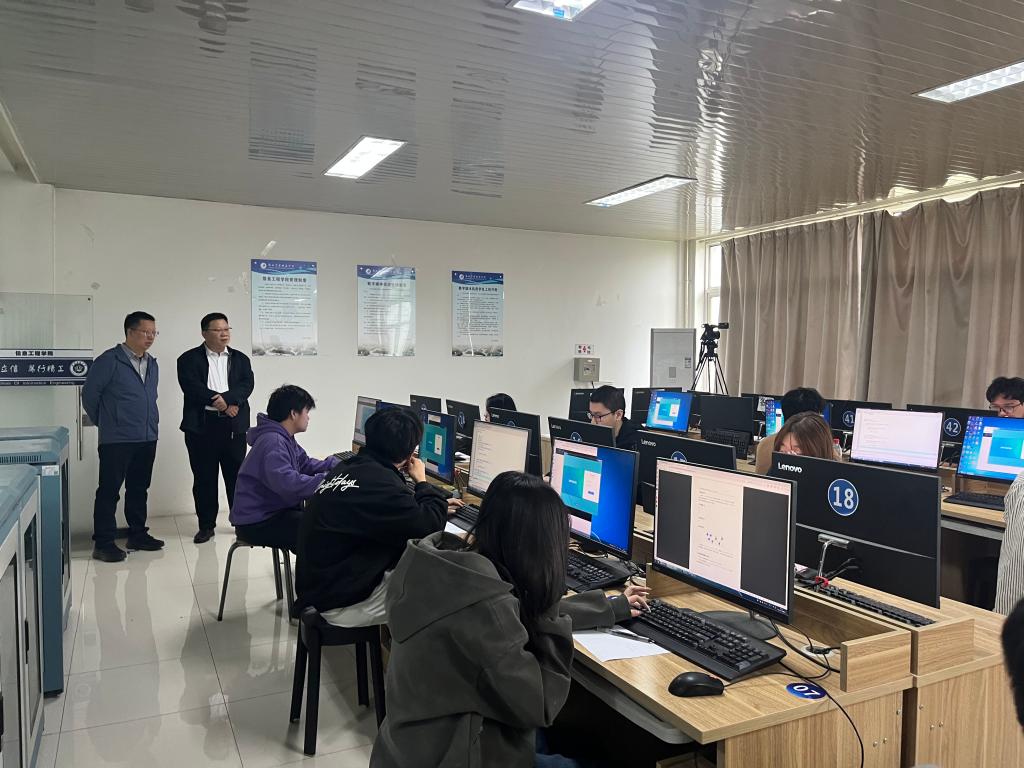 信息工程学院作为best365官网赛点的承办单位,高度重视本次赛事组织工作,成立了专门的考点工作领导小组,统筹协调各项考务工作。比赛当天,副校长李明军现场巡考。此次比赛共设5个标准化机房,设置了C/C++程序设计(研究生组、A组、B组、C组)及Web应用开发两个赛道。来自西安电子科技大学、西安财经大学、西安培华学院、西安信息职业大学、延安大学西安创新学院、中国兵器工业第202研究所、南宁学院等单位的选手同场竞技,展现出了良好的专业素养和竞技状态。